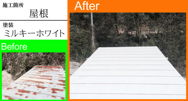 屋根塗装に「ミルキーホワイト」と、外壁塗装「パステル系グリーン」を使い