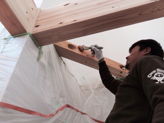 今日は春日井市の新築戸建ての木部はりの天然系塗料塗り(^^)