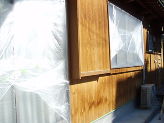 ②下地処理工程 養生作業